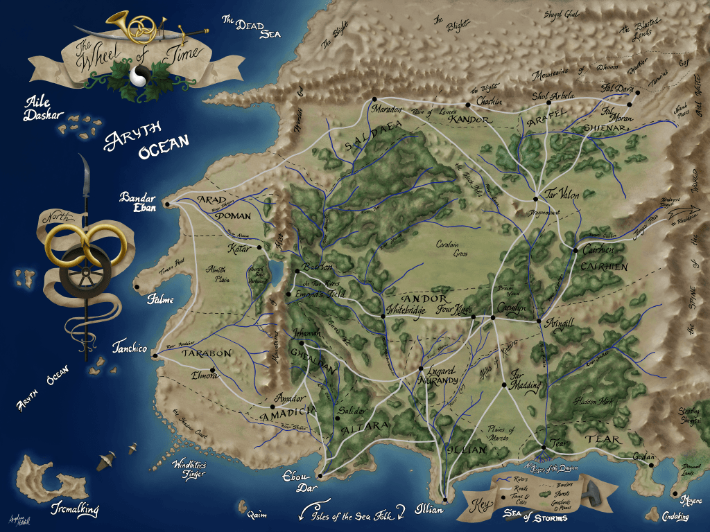 Digital painting of the Westlands map from the world of Robert Jordan’s the Wheel of Time. This painting was created in Adobe Photoshop using the original map made by Elissa Mitchell for reference.